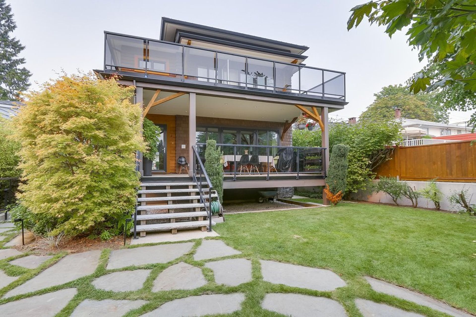 In the heart of Boulevard/Central Lonsdale, this stunning 4500 SF family home on 7,350 SF lot w/3 car garage & lane access was built of the highest quality for the discriminating owner. An exquisite home, it enjoys superior deluxe finishings w/European style doors/windows, gourmet kitchen w/pantry, Fischer Paykel appl, Kohler fixtures, oak floors, bthrms w/heated floors & metal roof. There are 4 bdrms up incl master w/dressing room & large deck, entertainment perfection on main & legal self-contained 1 bdrm suite. Features incl stairwell, closet & landscape lighting, wired for sound, Geothermal heating/air conditioning, clerestory windows & irrigation system in private S facing gardens. Lot & Pixilink house measures are approximate; buyer to verify.
