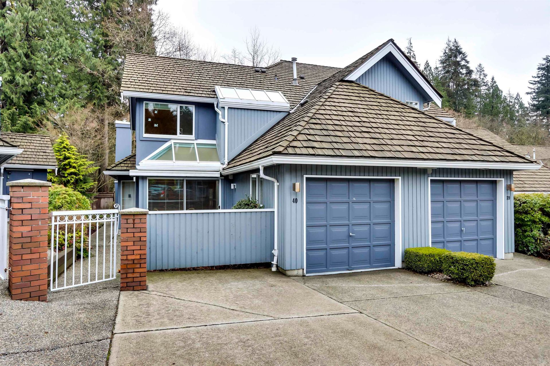 Welcome to the Windermere Complex! This 3 bed, 3 bath duplex style townhouse is nestled into a secure, gated community. The main floor incorporates an open living & dining area featuring floor to ceiling windows, vaulted ceilings, and skylights to add an airy spacious feel. Continue into the family-size kitchen well-appointed with s/s appliances, separate eating area, and sliding glass doors that open up to a lovely ground-floor patio and backyard. Main floor bedroom makes a great home office or bonus room. Upstairs, enter into the spacious Primary Bedroom through French doors, with walk-in-closet and spa-inspired ensuite. Secondary upper bedroom is a great size with its own ensuite. Private end-unit with attached single car garage. Situated close to amenities, shopping, trails and more.