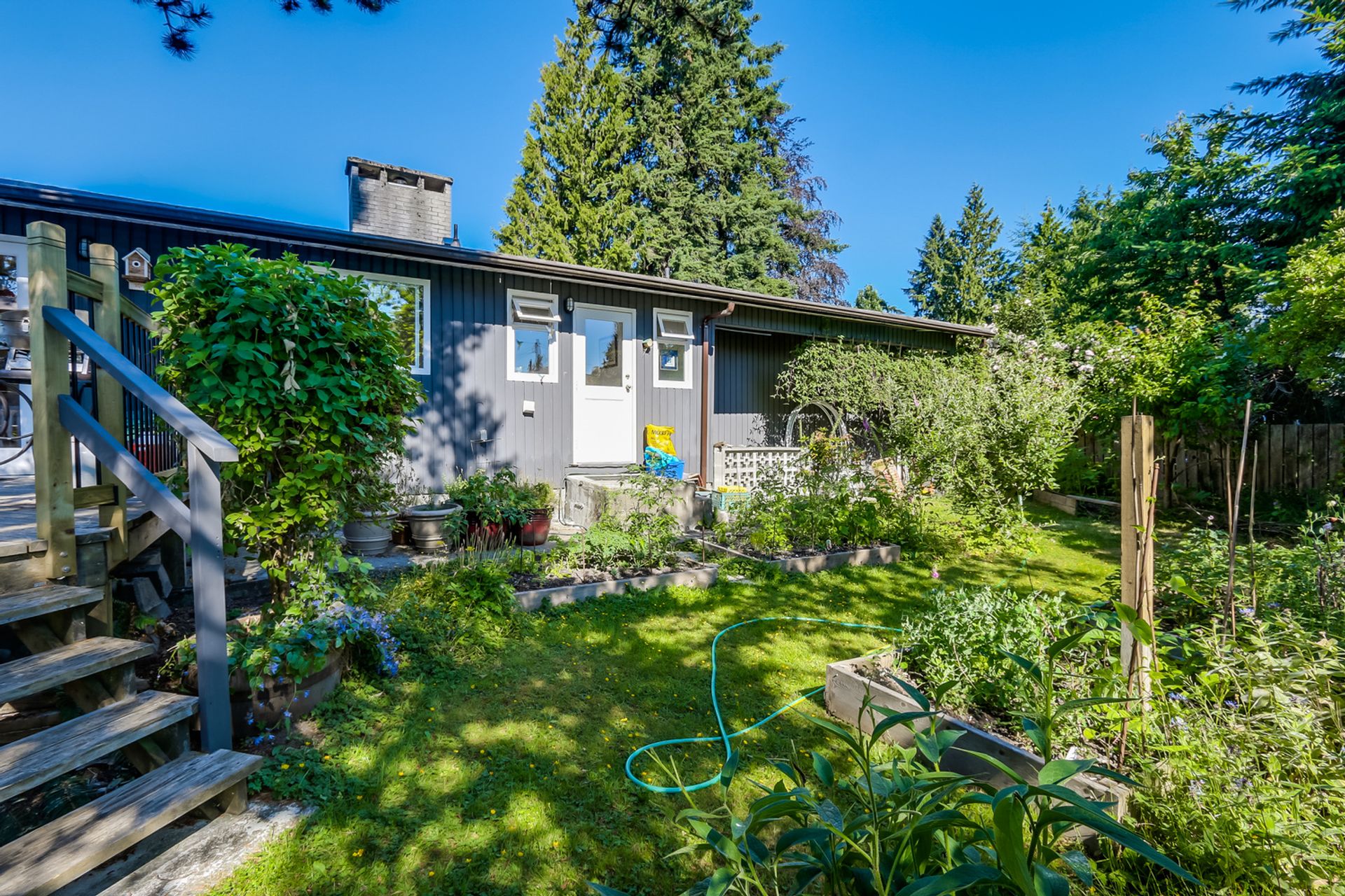 An excellent and affordable alternative to a townhouse -this charming rancher is set in the midst of an English style country garden and very private. Measuring 1475 SF, this home has had a large number of updates through the years and hasbeen meticulously maintained. There are 2 bedrooms plus a den (which is being used as a 3rd or guest bedroom) and it is completely open to the light-filled solarium. The living room is huge and the dining area opens out to a spacious 241 SF deck overlooking the rear gardens. There is a 1 car garage and a carport for parking. The private level lot is 7,232 SF and an easy walk to Lynn Valley Centre. The measurements are from Pixilink and are approximate, to be verified by the buyer.